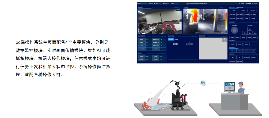 石油化工园区AI火情识别应急巡检机器人是一款具备强悍压制火情的巡检类应急机器人。该产品具备火情AI识别、高效强悍火情压制、智能自主巡检、多功能复合监控系统、优秀灵活通过性等功能。